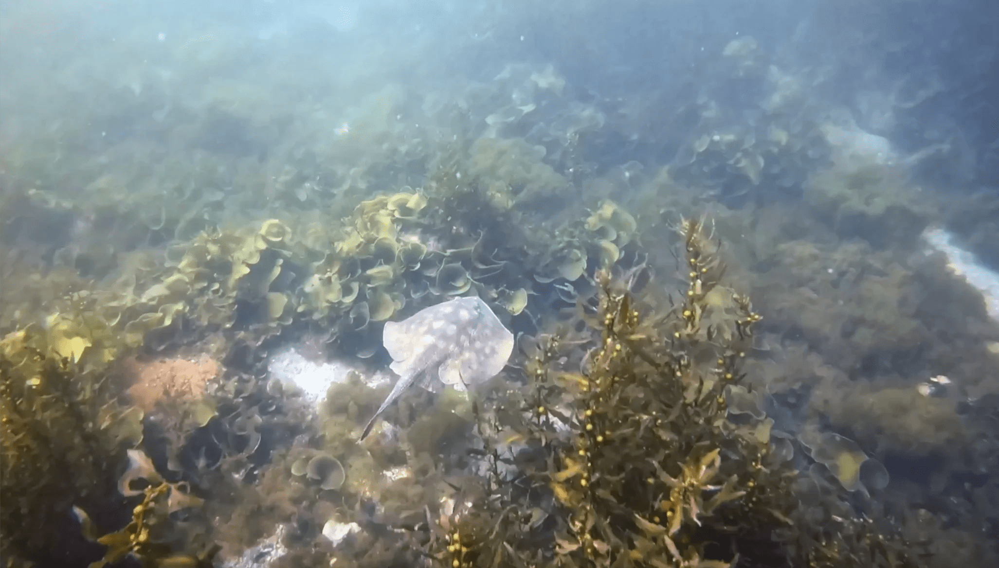 We started by exploring around the north point of the bay. Rich slipped into the water with his spear gun, hoping to find snapper or yellowtail. He didn’t spot either, but he did come across several small horn sharks and rays gliding through the sand channels.