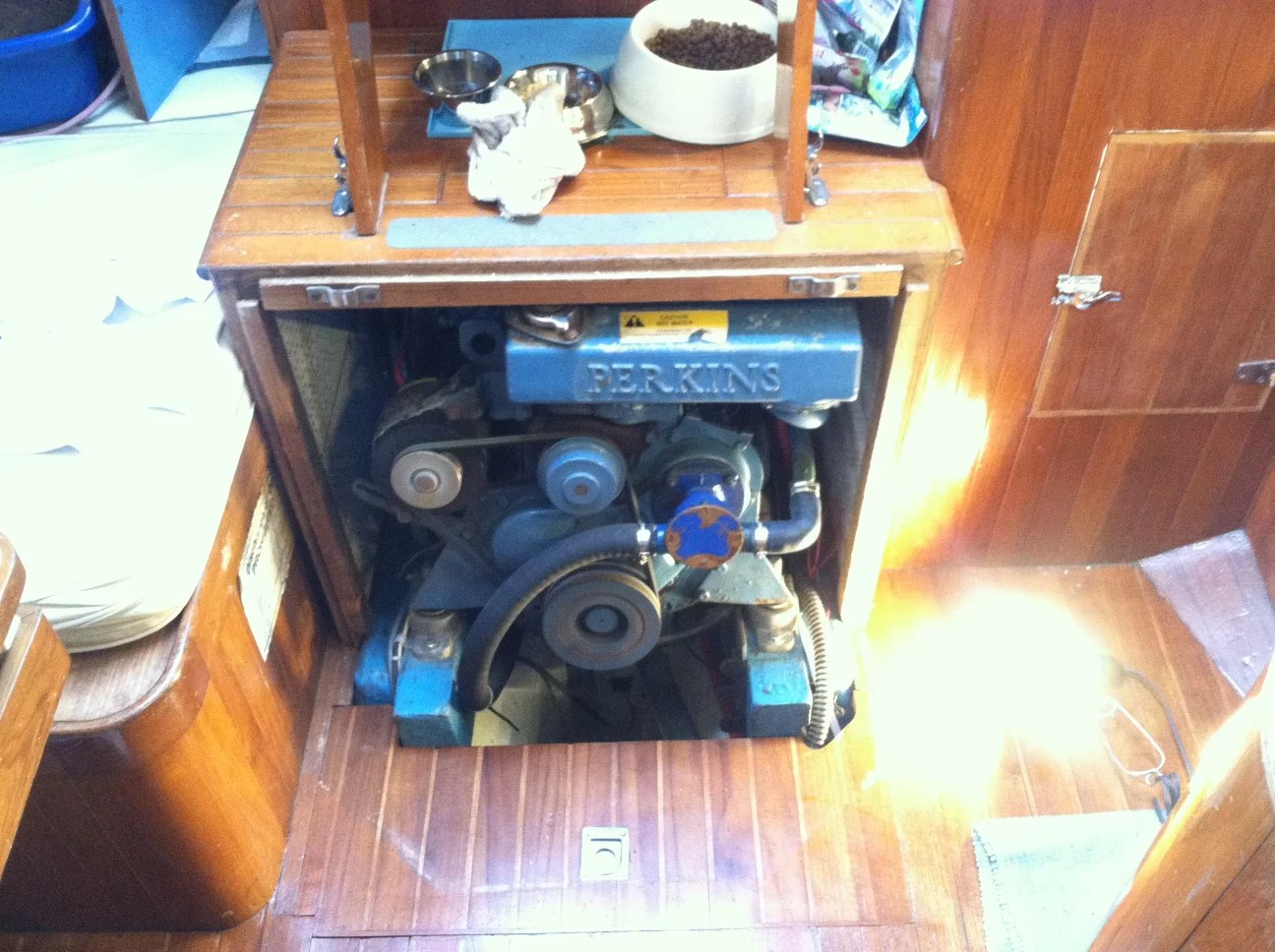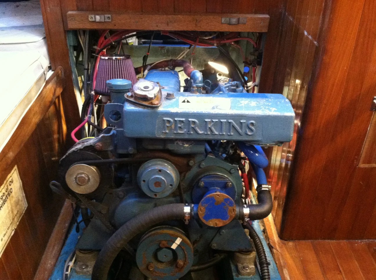 When we bought the boat the Perkins diesel 4-108 ran pretty well, but after sitting unused for nearly two years there were a few things to do before firing her up again. Basic maintenance like changing the oil and filter and the raw water pump impeller were pretty straightforward and fairly easy to do. However, upon digging a little deeper, it’s apparent that more work was needed before we could run the engine again.