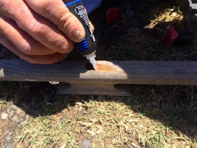 We took the 14-foot long, solid teak grab rails off the boat about two years ago. They’ve been stored way up high in the shed (out of sight, out of mind) since then. We were going to replace them with stainless steel tubing but decided to see if they could be saved. After lots of sanding, some scraping, teak cleaner and brightener, and a couple of coats of teak oil and sealer, they felt almost as good an new. We reinstalled them and sealed up the screw holes with 4000 sealant. It would have been a shame to let all that teak go to waste, plus they look great and add one more layer of safety to the boat.
